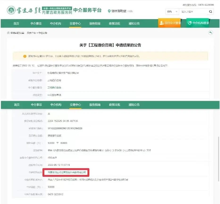 2022年5月10日,東烏珠穆沁旗住房與城鄉(xiāng)建設(shè)局對“東烏旗烏里雅斯太鎮(zhèn)道路及人行道鋪裝工程”進行公開選取工程造價咨詢中介服務(wù)機構(gòu),我公司根據(jù)要求進行了報名,2022年5月12日發(fā)布中選公告,我公司成功中選。